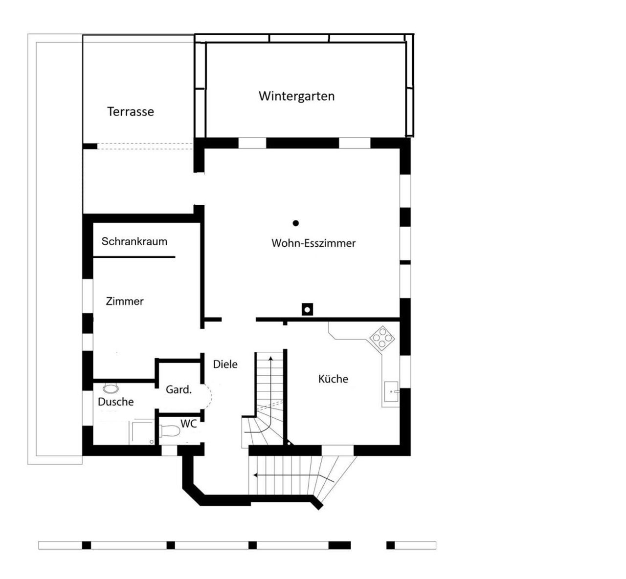 Im ca. 83m² großen Erdgeschoß befinden sich