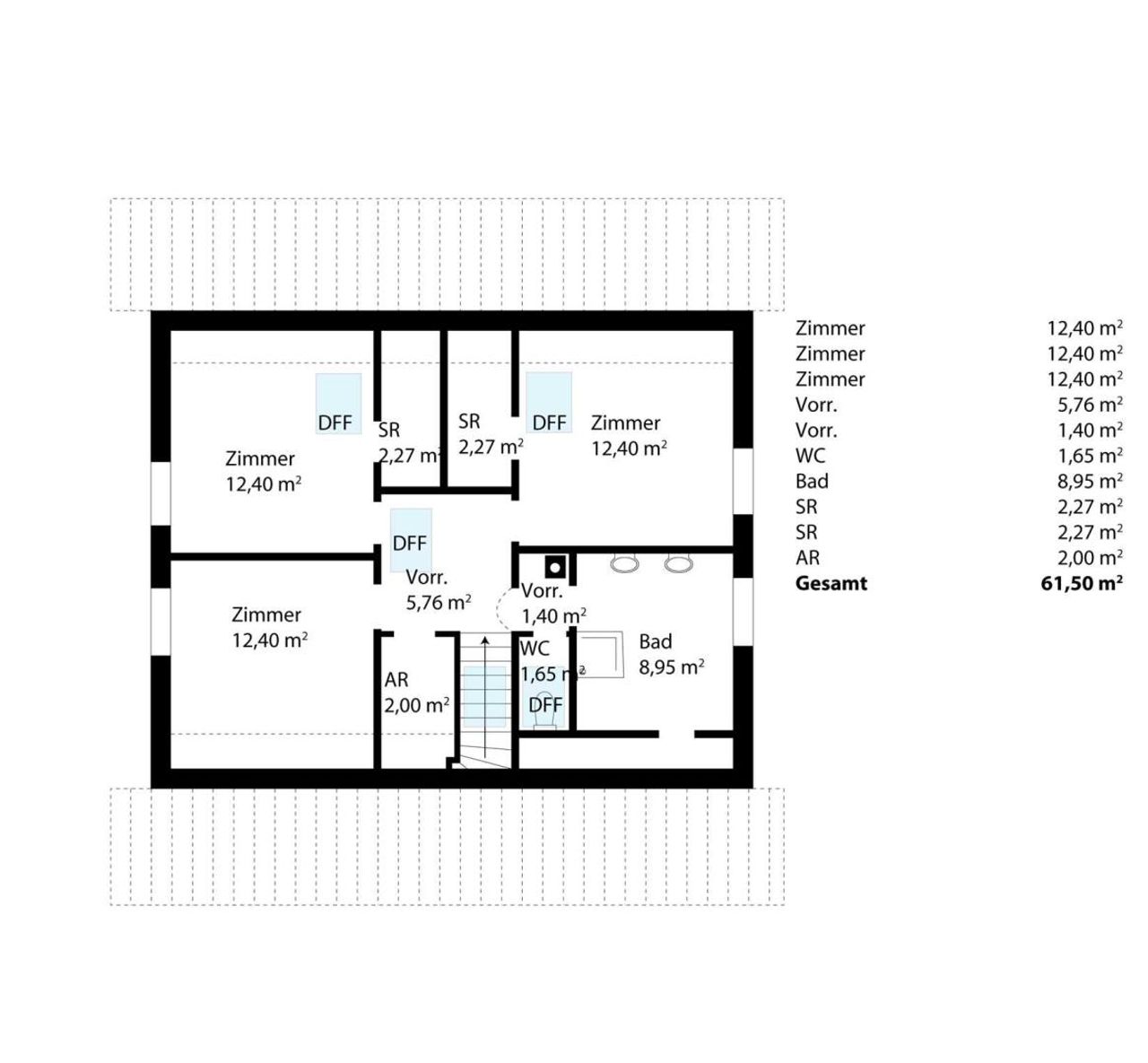 Das ca. 74m² große Obergeschoß ist eine Mansarde und bietet Ihnen