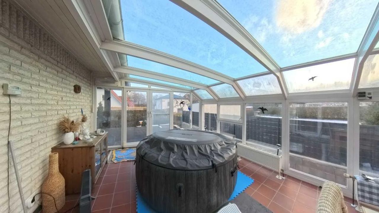 - ein großer beheizbarer Wintergarten mit Whirlpool für entspannte Stunden und großer Sitzplatz für gesellige Runden