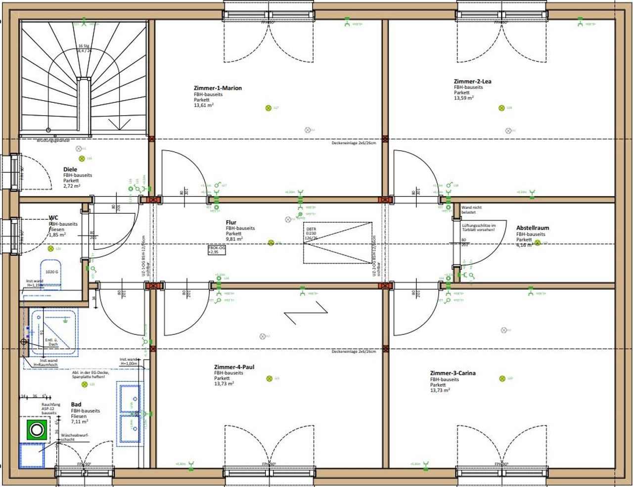 Jedes Geschoss verfügt über ein eigenes Badezimmer und insgesamt gibt es 3 WC´s.
