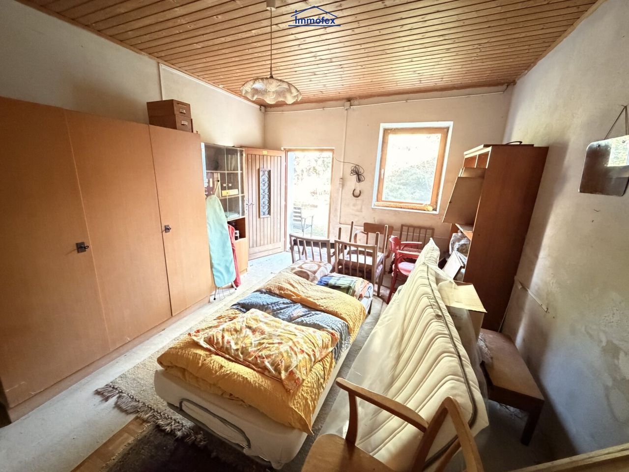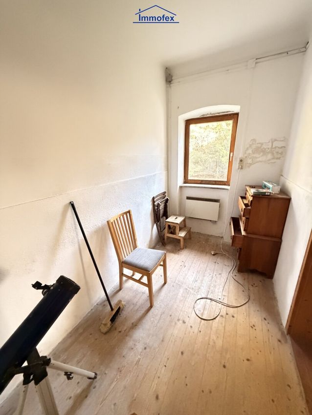 Im Haupttrakt sind 3,5 Räume und ein WC. Zu,- und Abwasser liegen schon in dem Trakt. Es gibt noch einen weiteren Raum, der im Moment nur von außen begehbar ist. So hätte man abzüglich Bad und Küche noch ausreichend Platz, um sich hier privat niederzulassen. Im Nebengebäude habe ich noch eine Werkstatt und ein Holzlager. Das kann man umbauen zum Wohnraum, oder eben Hobby und Freizeit hier unterbringen. Was mich in jedem Fall auszeichnet ist die Idylle und auch die Freiheit, sich hier in ländlicher Gegend mit viel Privatsphäre wohlfühlen zu können.