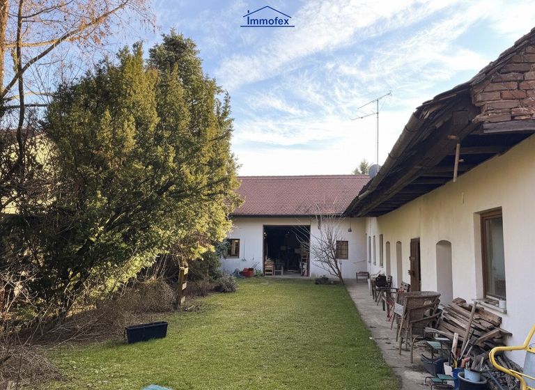 Nun erzähle ich ein wenig von mir. Wenn du durch das große hölzerne Hoftor kommst, dann biete ich dir schon eine gute Möglichkeit einen Blick in den Garten zu erhaschen. Stell dein Auto ab, nimm Platz auf dem Bankerl und komm einfach Zuhause an! Es gibt 2 Wohntrakte. Im kleinen, was früher vermutlich mal eine Art Ausgedinge gewesen ist, habe ich eine Küche, einen Abstellraum und ein Badezimmer. Hier könnte ich mir vorstellen, eine Art Büro, Praxis, energetische Behandlungen oder ähnliches unterzubringen. Garderobe, WC und Büro/Praxisraum wären umsetzbar.