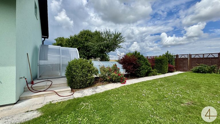 Das sehr geräumige Haus mit Küche, Bad, WC, 5 Zimmer, Garage bietet viel Platz und Erholung. Im Garten befindet sich ein Pool mit Überdachung.