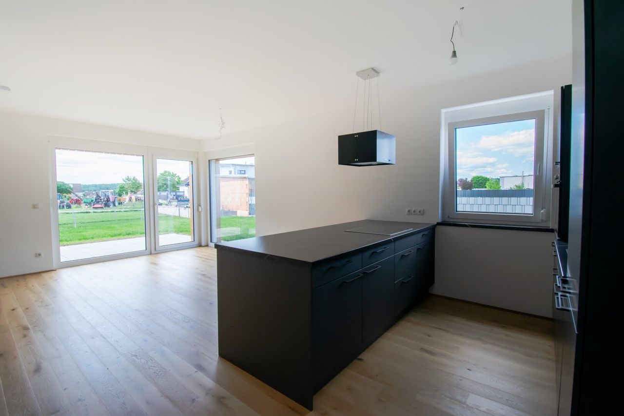 - moderner, lichtdurchfluteter Wohn-Ess-Küchenbereich