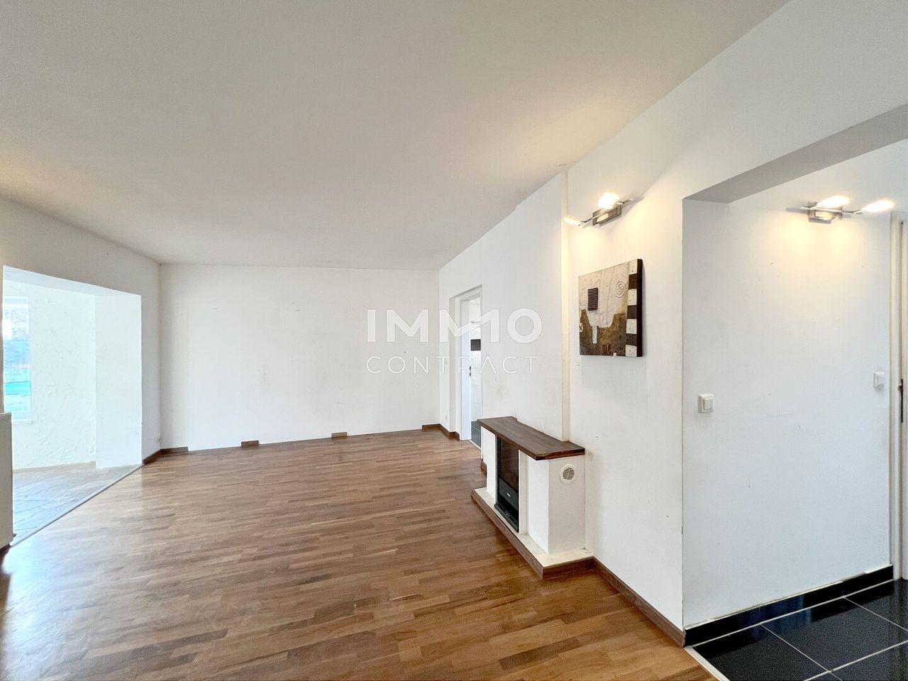 - Einladendes Wohnzimmer mit TV-Wand mit direktem Zugang zum vorgelagerten Wintergarten