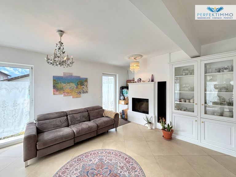 Das Haus erstreckt sich über Erd- und Obergeschoß und bietet eine Wohnnutzfläche von etwa 150 m². Fünf gut geschnittene Zimmer schaffen ein angenehmes Wohngefühl mit ausreichend Rückzugsorten für alle Familienmitglieder. Im Erdgeschoß bildet der helle Wohn- und Essbereich das Herzstück des Hauses. Große Fenster öffnen den Blick ins Grüne. Die angrenzende Einbauküche ist funktional gestaltet und bietet viel Platz zum Kochen und Genießen.