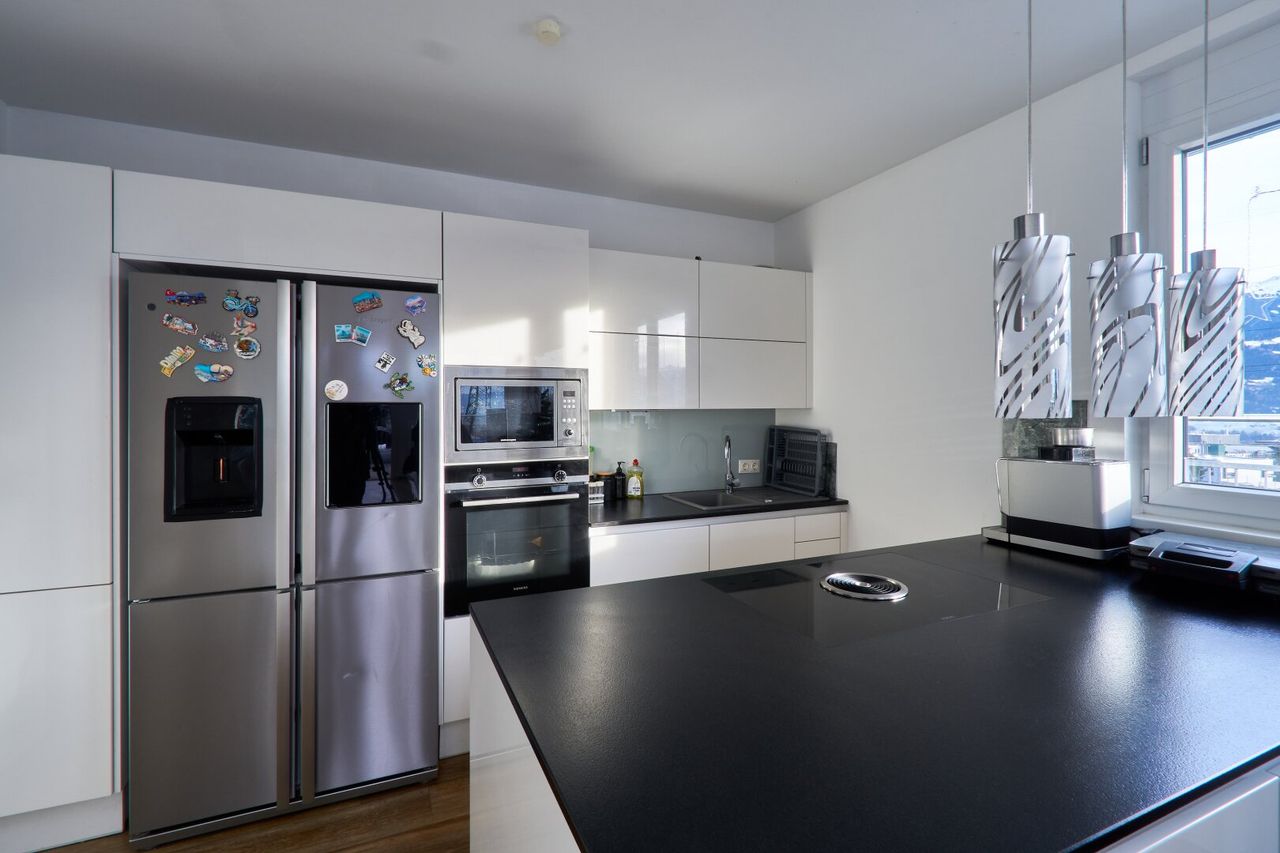 In ruhiger Lage in Absam, erreichbar über eine private Zufahrtsstraße, befindet sich diese neuwertige Doppelhaushälfte mit durchdachter Raumaufteilung auf drei Ebenen. Rund 110,87 m² Wohnfläche, drei Schlafzimmer, ein großzügiger Wohn- und Essbereich sowie eine ca. 37,78 m² große Dachterrasse mit traumhafter Ausrichtung bieten ideale Voraussetzungen für modernes Familienwohnen. Der sonnige Garten mit Ost- und Südausrichtung bietet viel Platz. Das Haus ist komplett unterkellert, ein Raum sogar beheizbar. Die hochwertige Küche mit Stein-Arbeitsplatte sowie die vorhandenen Möbel sind auf Wunsch im Kaufpreis inkludiert. Zwei Autoabstellplätze, einer davon überdacht, runden dieses attraktive Angebot ab.