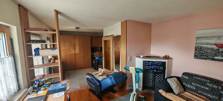 Im Erdgeschoss liegt ein großzügiger Raum mit direktem Terrassenzugang, der sich bei Bedarf in zwei Zimmer unterteilen lässt.