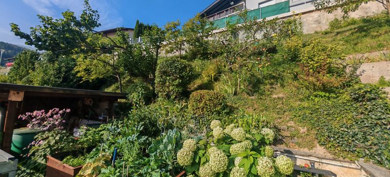 Mehrere Garten- und Terrassenflächen verteilen sich über den Hang und schaffen vielfältige Möglichkeiten für Freizeit und Erholung.