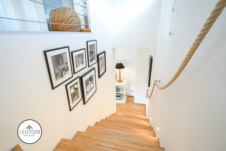 Über den Stiegenaufgang gelangt man in das Obergeschoss, wo sich die privaten Rückzugsräume des Hauses befinden. Auf dieser Etage stehen drei weitere Zimmer zur Verfügung, die flexibel als Schlaf-, Kinder-, Arbeits- oder Gästezimmer genutzt werden können. Alle Zimmer profitieren von einer großzügigen Belichtung und sind mit Rollläden ausgestattet.