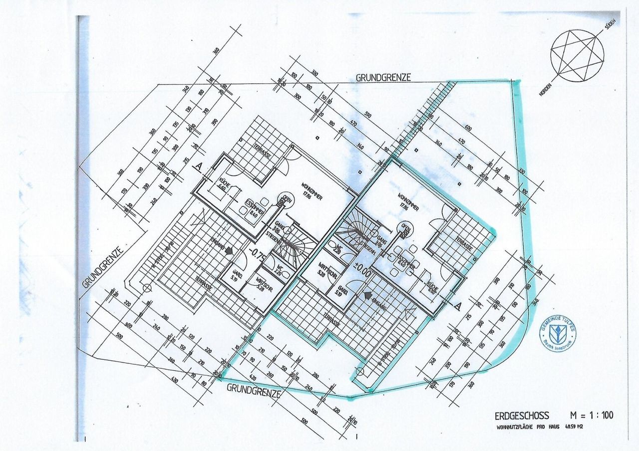 - Innenfläche: 102,26 m2 zzgl. 7,79 m2 Stiegenhaus, 31,12 m2 Kellergeschoss und 39,09 m2 Doppelgarage