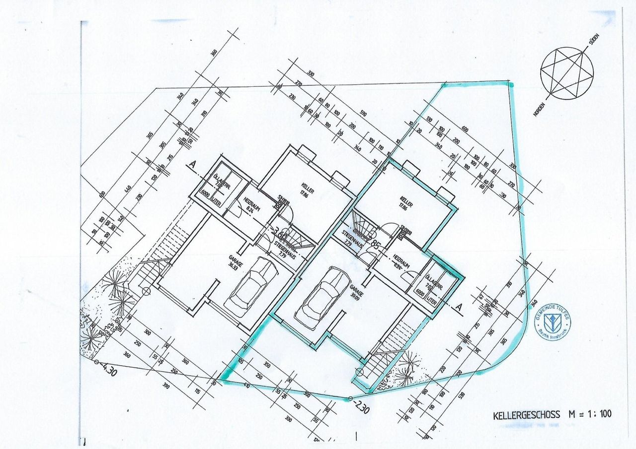 - Verschließbare Garage mit automatischen Rolltoren für 2 Fahrzeuge; vor der Garage können weitere 2 Fahrzeuge geparkt werden; zusätzlicher Parkplatz im Freien im nord-westlichen Bereich des Grundstückes für 1 weiteres Fahrzeug