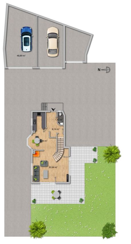 Abgerundet wird das Angebot durch eine Doppelgarage, die ausreichend Platz für Fahrzeuge und zusätzlichen Stauraum bietet.