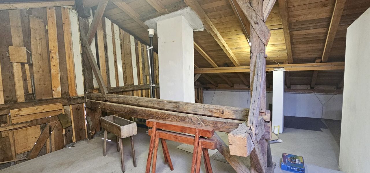 Das Haus wurde 1989 generalsaniert und befindet sich in gepflegtem Zustand. Der ausbaufähige Dachboden eröffnet zusätzliches Potenzial – ob als Atelier, zusätzlicher Wohnraum oder Rückzugsort mit Aussicht – hier sind Ihrer Fantasie keine Grenzen gesetzt.