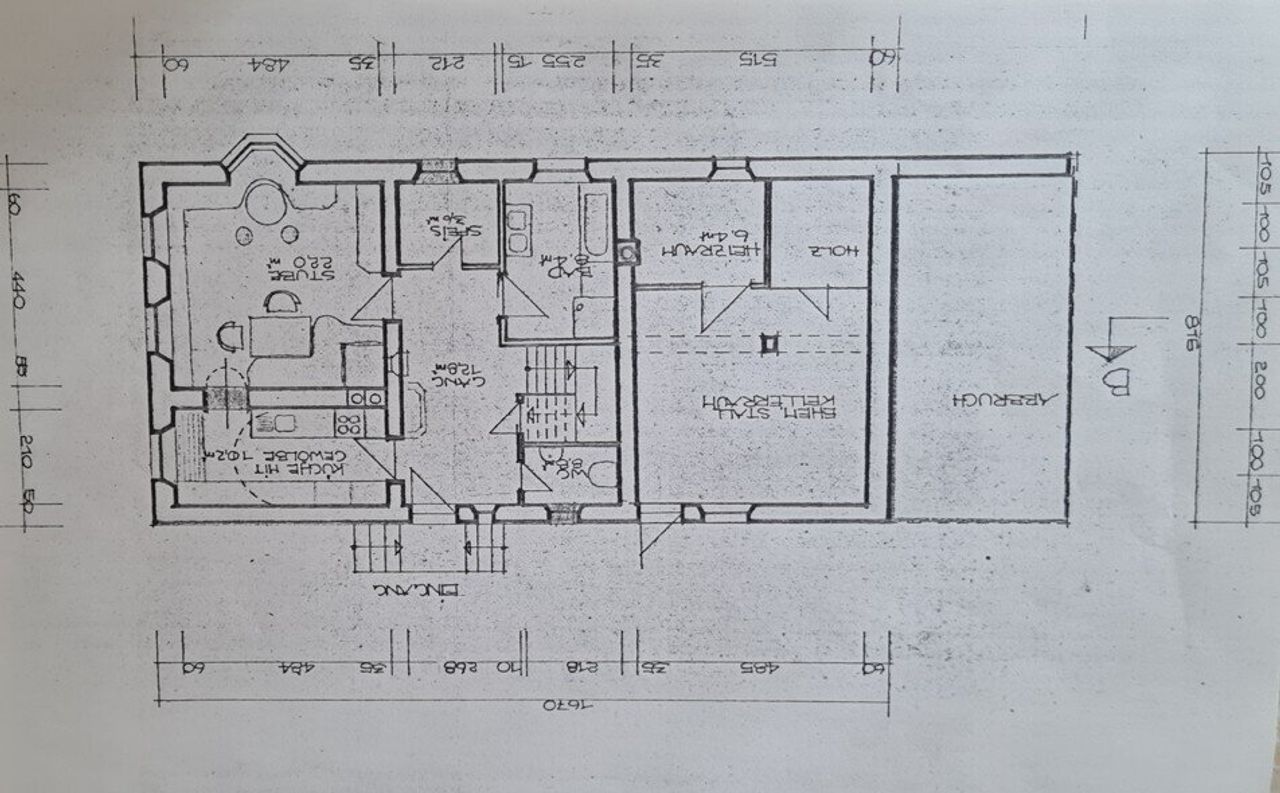 - EG Küche, Wohnzimmer, großes Badezimmer mit Badewanne, Gäste WC, Garderobe sowie Technikraum mit kleiner Werkstätte, Garten mit kleinen Gartenhaus, Terrasse