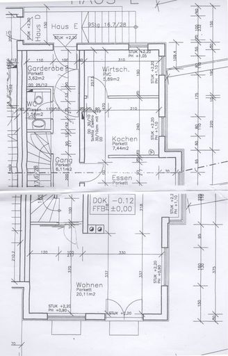 Das Erdgeschoss besteht aus Wohzimmer mit Wohnküche, einer Speis oder Büro mit Fenster hinter der Küche, Gäste WC und einer Garderobe.