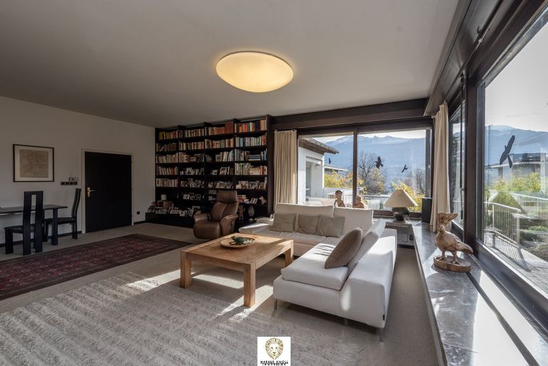 Das Herzstück bildet das große Wohnzimmer mit abgesenkter...