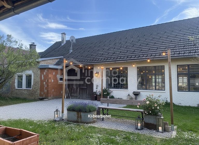 Der jetzige Wohnteil, bestehend aus 2 Zimmern, Küche, Bad und WC, mit ca. 50 m2 wurde hergerichtet. Das Dach hier wurde vor ca. 15 Jahren inkl. Dachstuhl erneuert. Ortswasserleitung und Kanal sind...