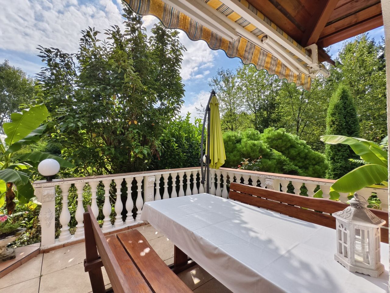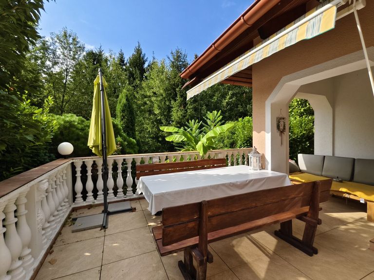 - Überdachte Terrasse mit Blick ins Grüne
