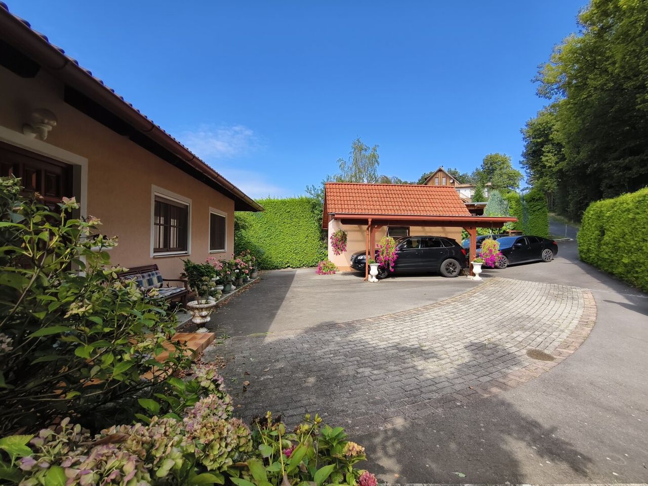 - Großzügige Einfahrt mit gesicherter Zufahrt