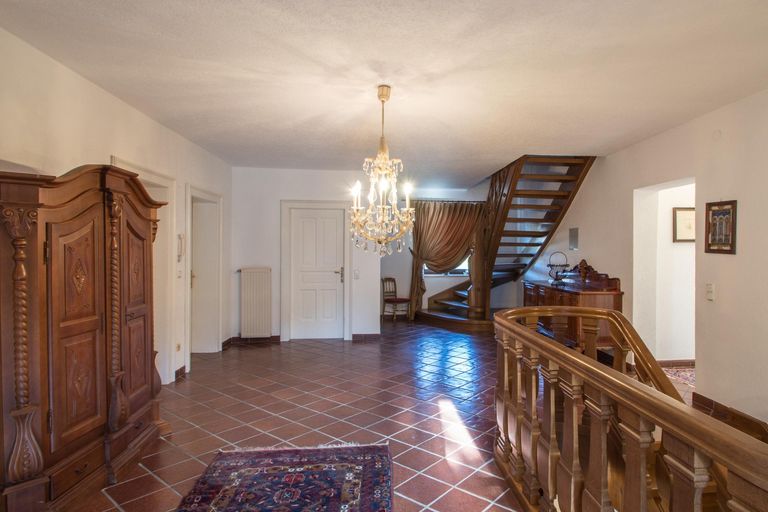 Über den prächtigen Stiegenaufgang aus Holz gelangt man in das Obergeschoß mit 5 Zimmer, einem Badezimmer mit Badewanne und WC, einem separaten WC und einem weiteren ausbaufähigen Badezimmer.