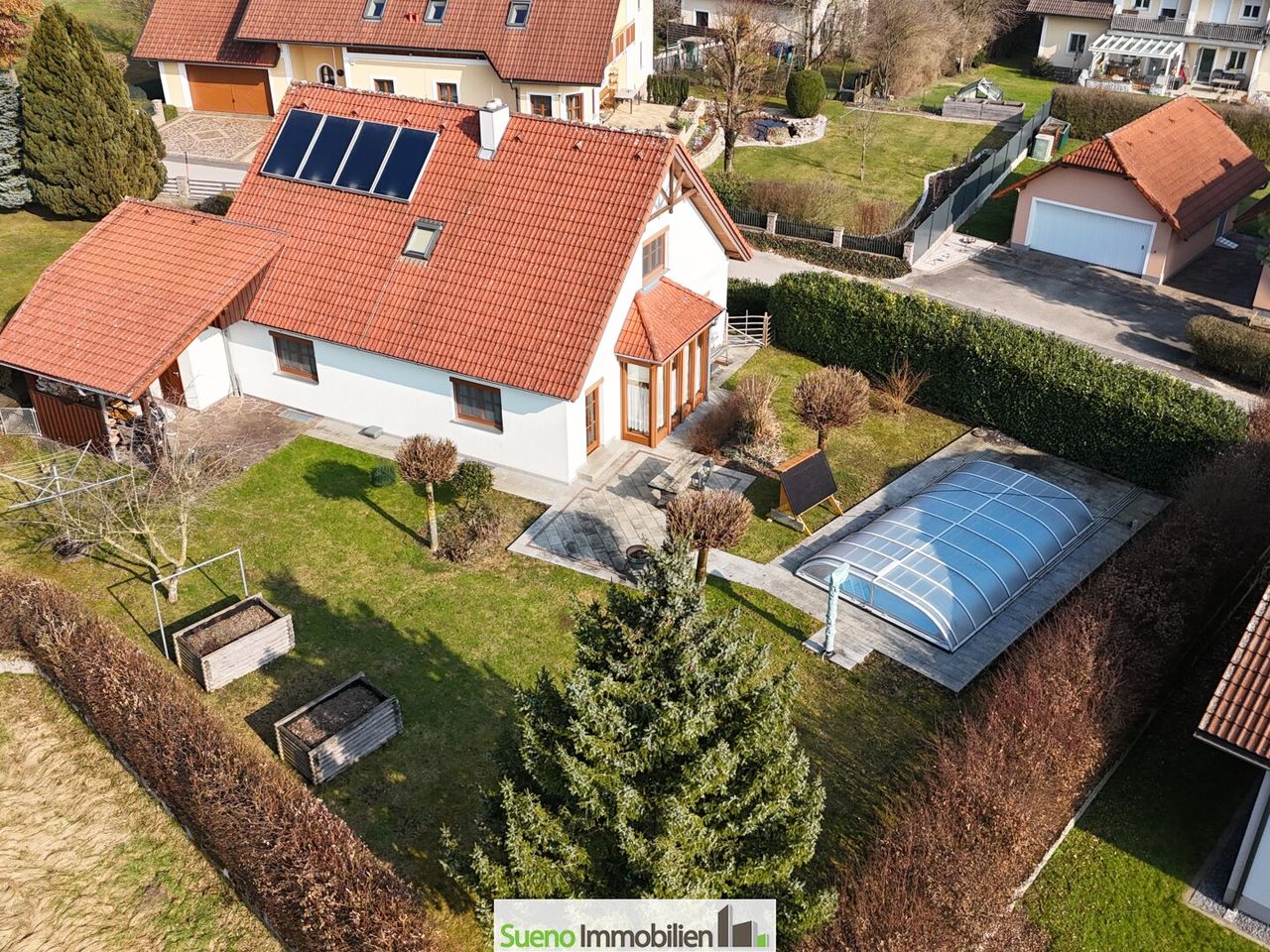 TOP Einfamiliehaus im Grünen mit Pool samt Abdeckung, Einzelgarage, Keller, und ausgebautem Dachgeschoß!