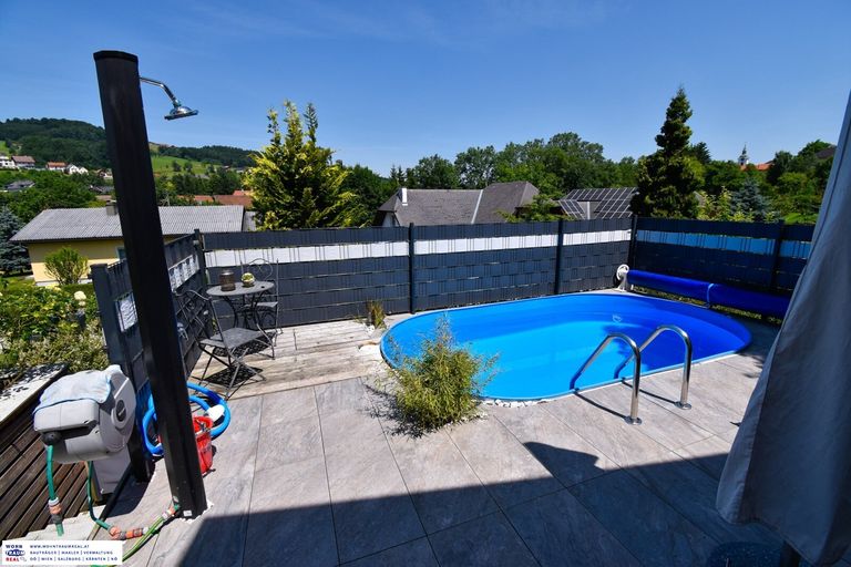 Darauf kann man grillen und im Sommer im eigenen Swimmingpool ungestört relaxen und baden.