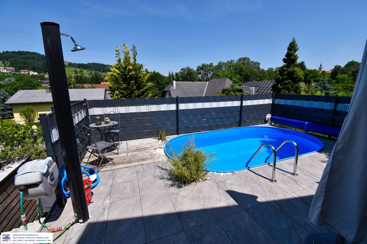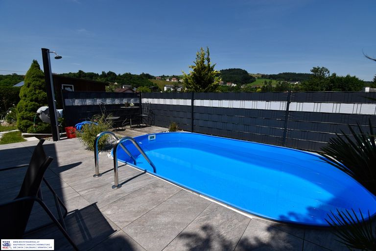 Das Haus hat ein nettes Grundstück mit Swimmingpool, und Panoramablick. Hier wird jeder Tag zur Erholung. Ein Ort, an dem man zur Ruhe kommt, durchatmet und einfach gerne zuhause ist.