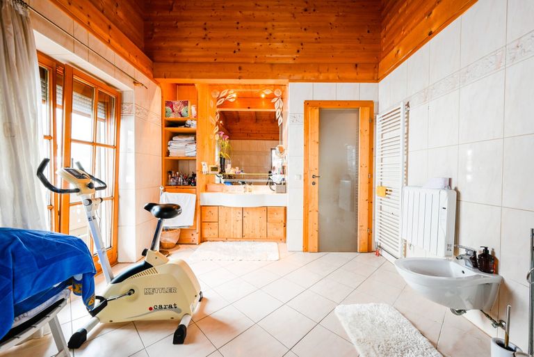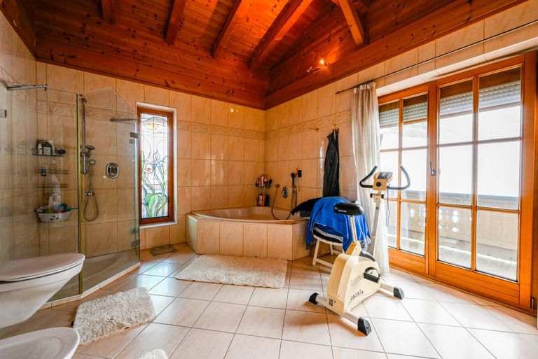Das Haus ist mit modernen Annehmlichkeiten ausgestattet, darunter Fliesen und eine Fußbodenheizung, die für ein behagliches Wohnklima sorgt. Zwei stilvolle Badezimmer – eines ausgestattet mit einer Badewanne, Dusche, Bidet, WC, Waschtisch und Fenstern und das andere mit einer Dusche,Waschtisch, WC und Fenster – bieten Ihnen Flexibilität und Komfort für die gesamte Familie. Zusätzlich stehen Ihnen ein weiteres Gäste WC mit Waschbecken im Wohnbereich zur Verfügung.