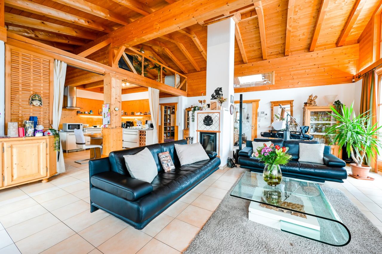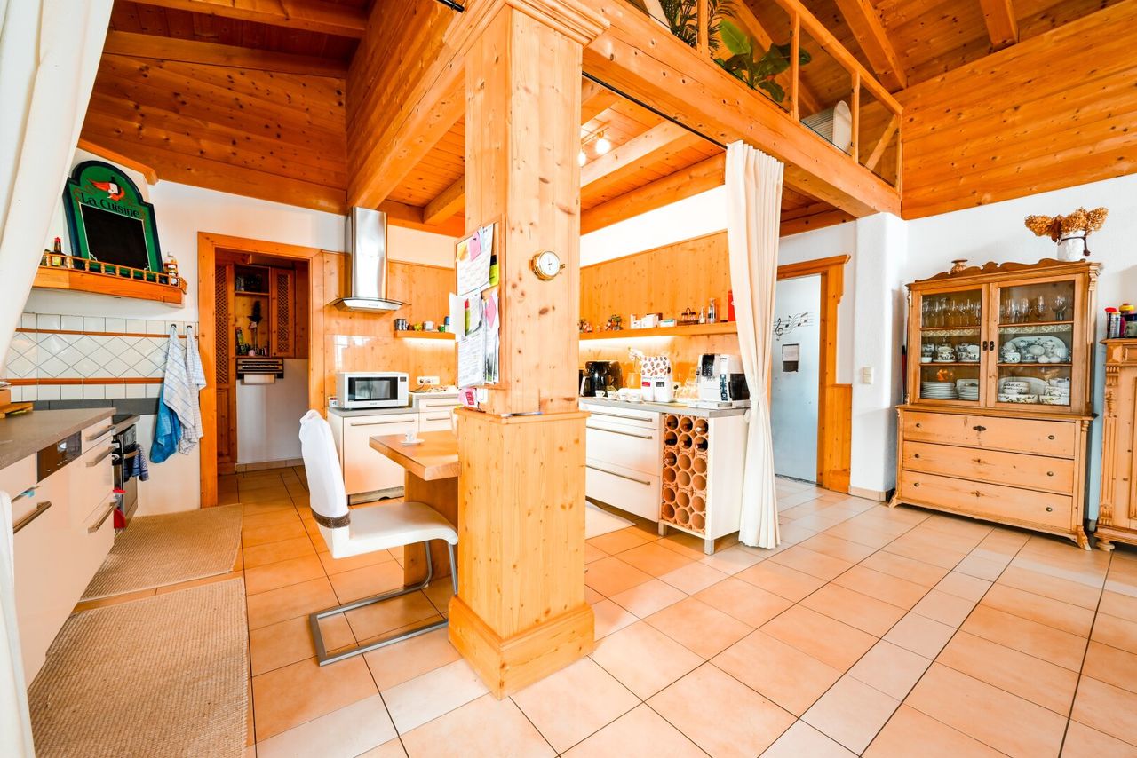 Der offene Wohn- Kochbereich mit großen Fensterfronten bietet alles, um sich in diesem Anwesen komplett wohl zu fühlen. In der modernen Küche mit Abstellraum finden Sie alle Geräten um mit Familie und Freunden Ihrer Kochleidenschaft zu frönen. Der offene Wohn- Essbereich ist mit einem Sichtdachstuhl versehen, der ein offenes und luftiges Wohngefühl aufkommen lässt. Ein Kaminofen sorgt in den kalten Wintermonaten mit seinem Knistern für eine ganz besondere Behaglichkeit.