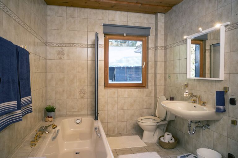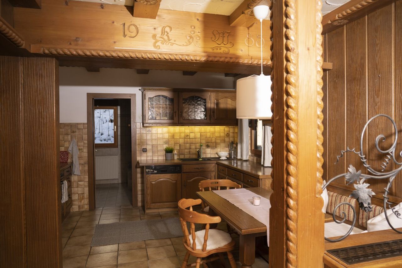 Ein traditioneller Kachelofen sorgt für wohlige Wärme und uriges Hüttenflair. Zusätzlich ist eine Zentralheizung vorhanden, die für zeitgemäßen Komfort sorgt.