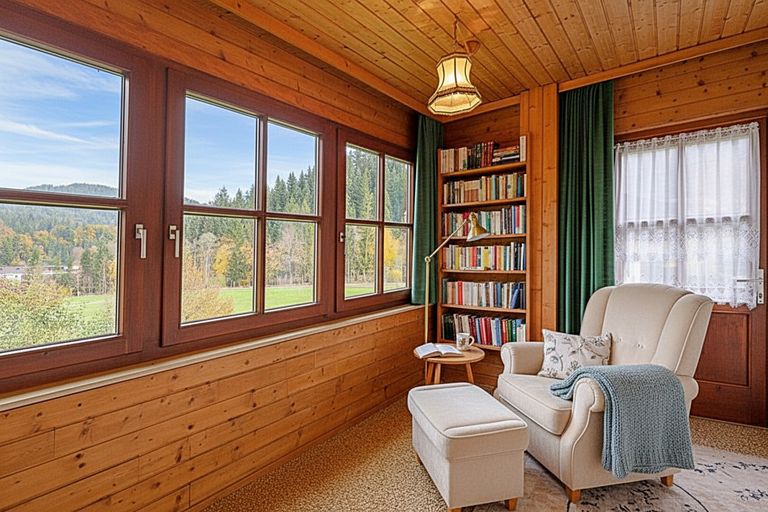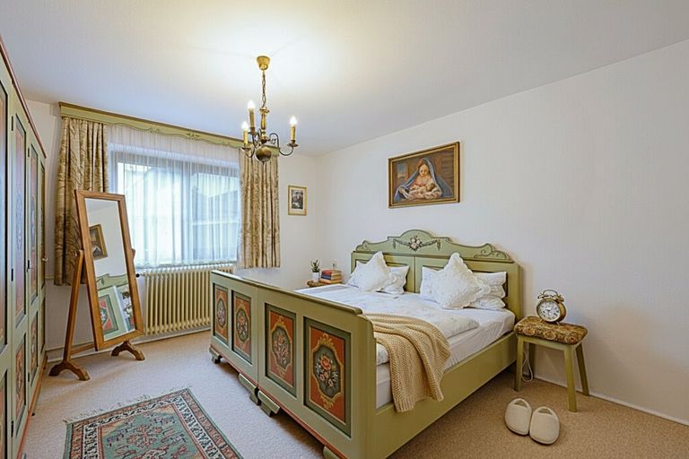 Das Haus bietet insgesamt 4 Schlafzimmer, zwei Badezimmer und ein WC in jeder Etage. Im Obergeschoss befindet sich ein offener Wohnbereich mit großem Esstisch, gemütlichem Kamin und angrenzender Küche. Zudem befindet sich auf dieser Etage ein Kinderzimmer, welches aktuell als Büro genutzt wird sowie eine ausgebaute Loggia, welche sich als Lesezimmer oder dergleichen eignen würde. Im Erdgeschoss befindet sich ein weiteres Wohnzimmer, ebenfalls mit Kachelofen, eine separate Küche, ein Schlafzimmer sowie ein Badezimmer. Somit könnte das Erdgeschoss als eigene kleine Einheit oder zur Vermietung an Feriengäste genutzt werden. Im Dachgeschoss befinden sich zwei Schlafzimmer und ein Badezimmer mit Dusche und Wanne sowie ein Raum zur Lagerung, welcher als Kleiderschrank genutzt wird. Das Haus bietet somit viel Platz und Möglichkeiten, es nach den eigenen Bedürfnissen umzugestalten. Die praktische Ausstattung umfasst zudem zwei Garagen, die nicht nur Platz für Fahrzeuge bieten, sondern auch als zusätzlicher Stauraum dienen können.