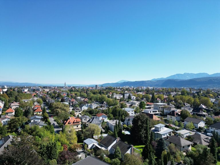 Hier vereinen sich Prestige und Urbanität mit Ruhe und Weite. Die Blickachsen führen von den ehrwürdigen Kirchen der Stadt bis zur majestätischen Karawankenkette – ein Panorama, das fasziniert und bleibt.
