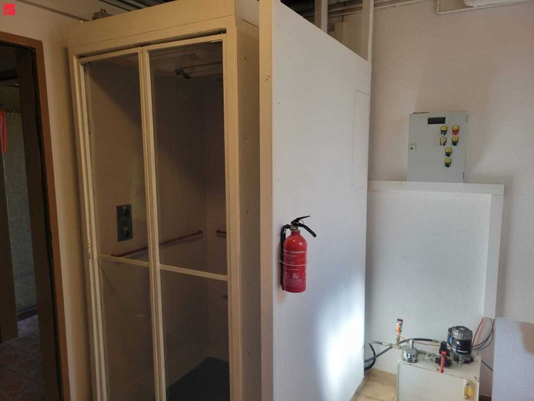 Im Erdgeschoss befinden sich eine Küche, ein Badezimmer, ein separates WC sowie ein Heizraum mit zusätzlichem Abstellraum. Besonders hervorzuheben ist ein Zimmer mit integriertem Lift, der einen barrierearmen Zugang in das Obergeschoss ermöglicht und somit auch für Rollstuhlfahrer bestens geeignet ist.