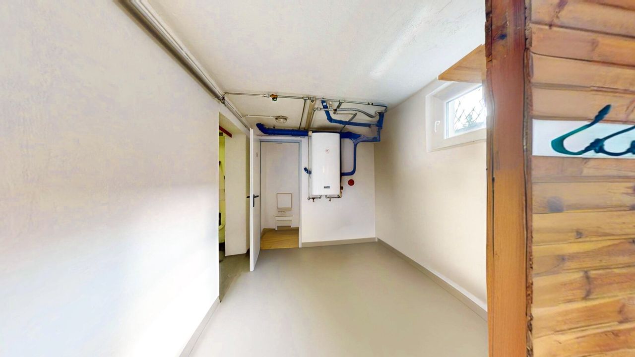 Die Beheizung erfolgt derzeit mittels Stromkonvektoren ergänzt durch den Kaminofen; die Warmwasserzufuhr wird durch einen EHT-Warmwasserboiler im Kellergeschoss zuverlässig sichergestellt. Fenster und Eingangstüren wurden erneuert (3-fach verglast, aktueller Standard). Das gesamte Chalet/Ferienhaus wurde umfassend saniert: Dach, Fassade, Fenster, Böden, Wasser- und Abwasserleitungen, Badezimmer und Terrasse wurden erneuert; die Gehwege wurden neu gepflastert.