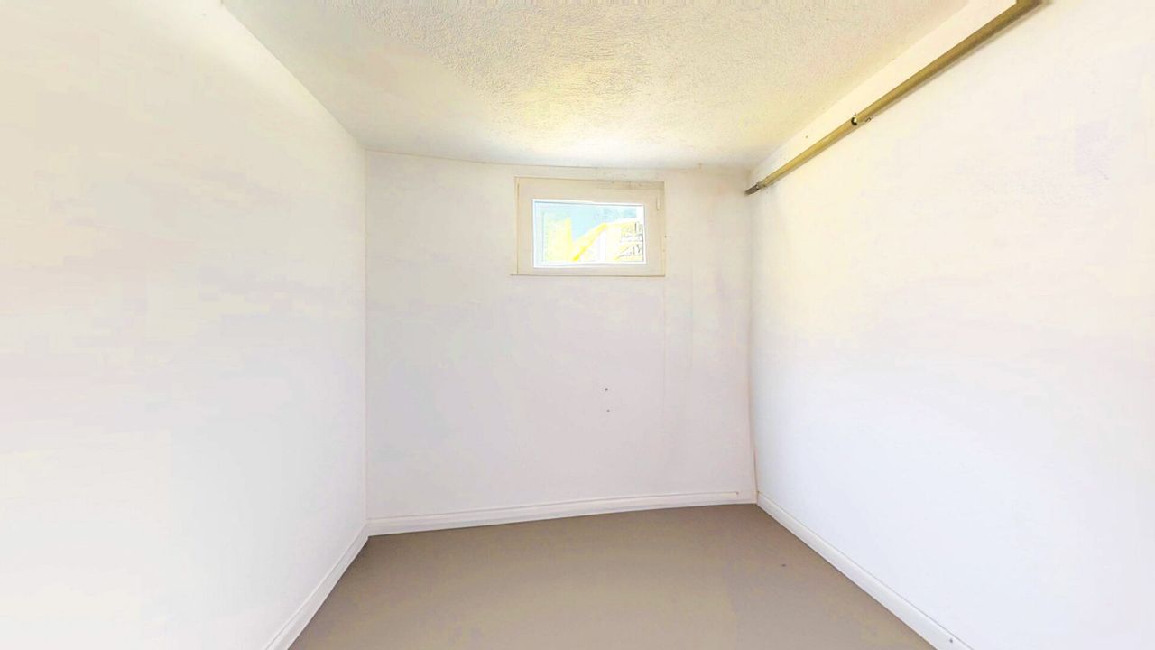 Der Zugang zum trockenen Kellergeschoss erfolgt über einen überdachten Treppenabgang. Der Keller beherbergt ein Holzlager, einen großzügigen Partyraum mit hellem Holzboden, einen Waschraum, ein WC (braune Fliesen) sowie einen größeren Vorraum, der als Lager genutzt wird. Der Estrichbereich ist fachgerecht mit spezieller Kellerfarbe versehen. Der Keller bietet Potenzial zur Umnutzung als Wohnkeller oder als zweite abgeschlossene Vermieteinheit — ideal für Investoren, die ein Renditeobjekt Bodental suchen.