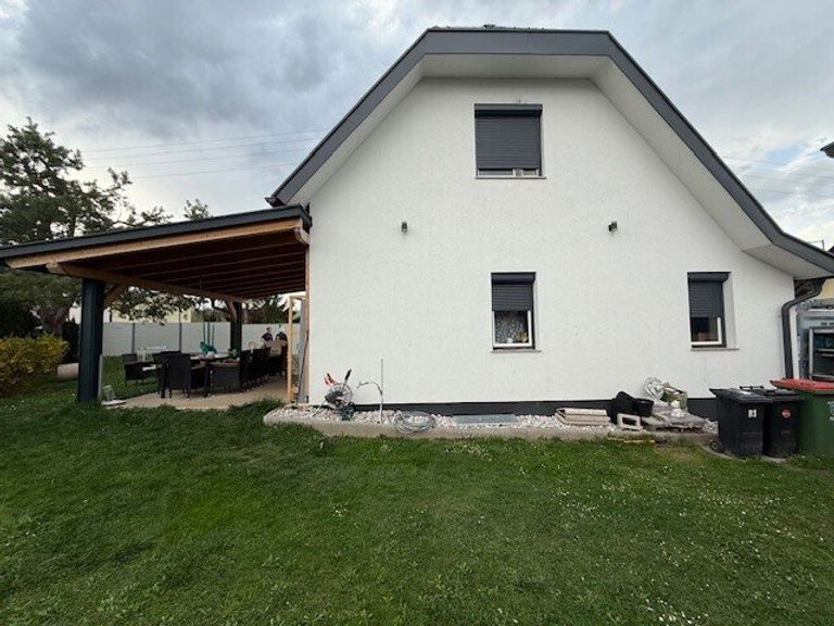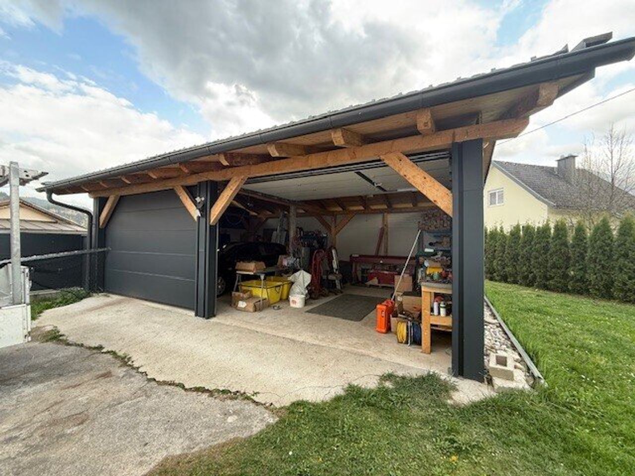 Ebenfalls neu errichtet wurde ein praktisches Nebengebäude mit zwei großzügigen Garagenplätzen. Dieser zusätzliche Stauraum bietet Platz für Hobby und Handwerk.