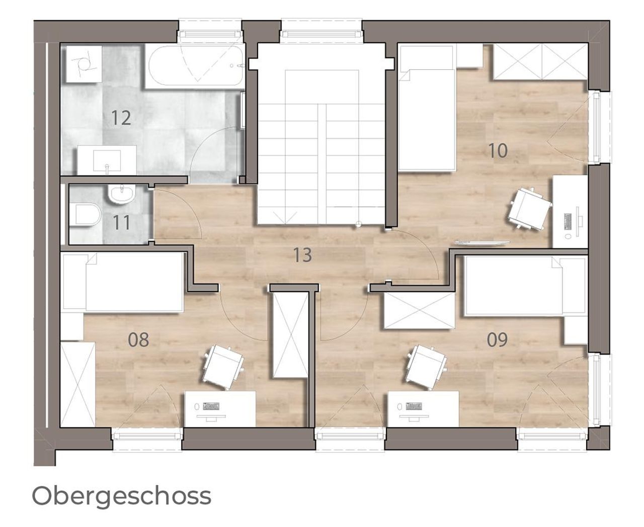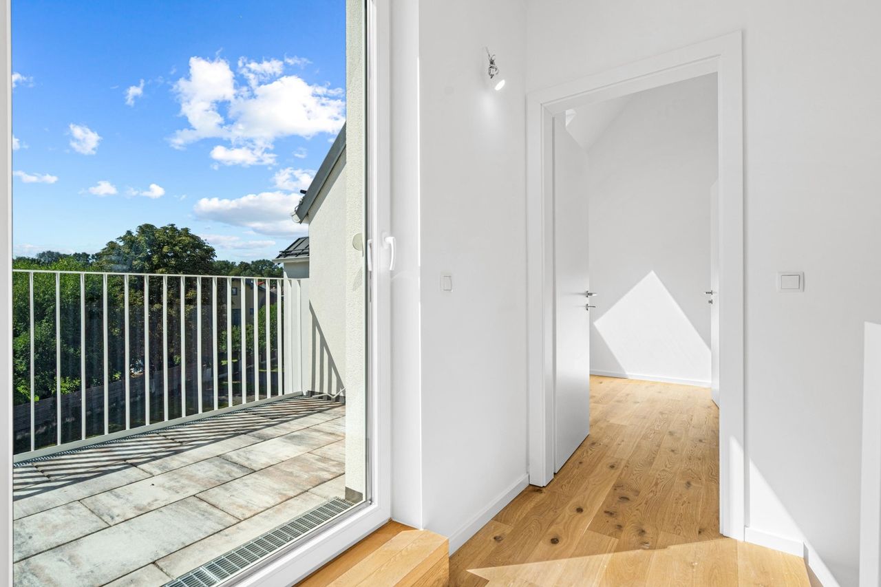 Jede Wohneinheit besticht durch klare Linien, großzügige Raumkonzepte und ein Ambiente, das modernes Design mit behaglicher Wohnlichkeit verbindet. Sechs Zimmer auf drei Ebenen schaffen Platz für individuelles Leben – vom Homeoffice über Kinder- und Gästezimmer bis hin zum privaten Rückzugsort.