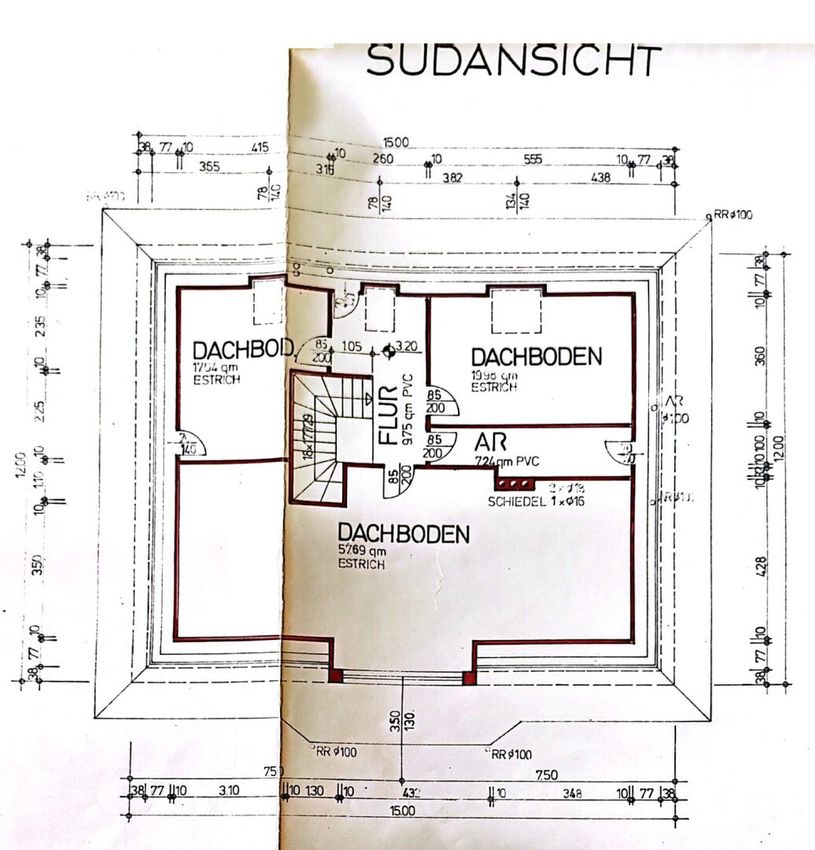 - Dachgeschoss ( ca. 110 m2) : bestehend aus drei Räumen, welche teilweise ausgebaut sind, jedoch nicht zur Wohnfläche adaptiert sind, sondern derzeit als Dachboden und Staufläche dienen.