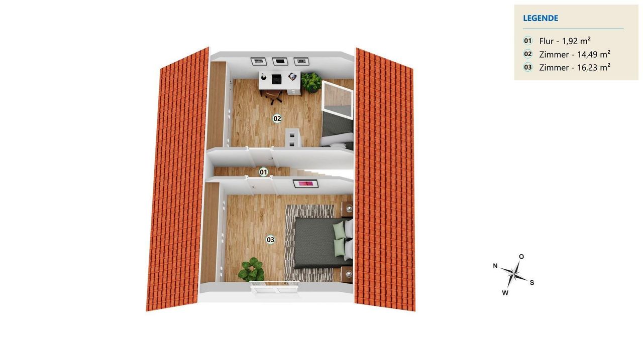 Vom kleinen Zimmer im Erdgeschoss gelangt man auf die ca. 6 m² große und überdachte Terrasse, von der man auch in den Garten kommt, der zur Erholung einlädt. Das Haus ist Süd-Ost bis Nord-West seitig ausgerichtet und voll unterkellert.