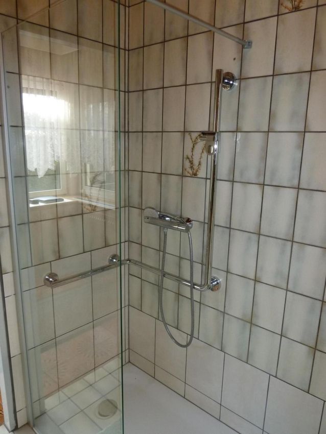 Das Bad ist mit einer Dusche ausgestattet und wurde zwischendurch einmal erneuert, ebenso wie auch 2000 die Heizung von Buderus.