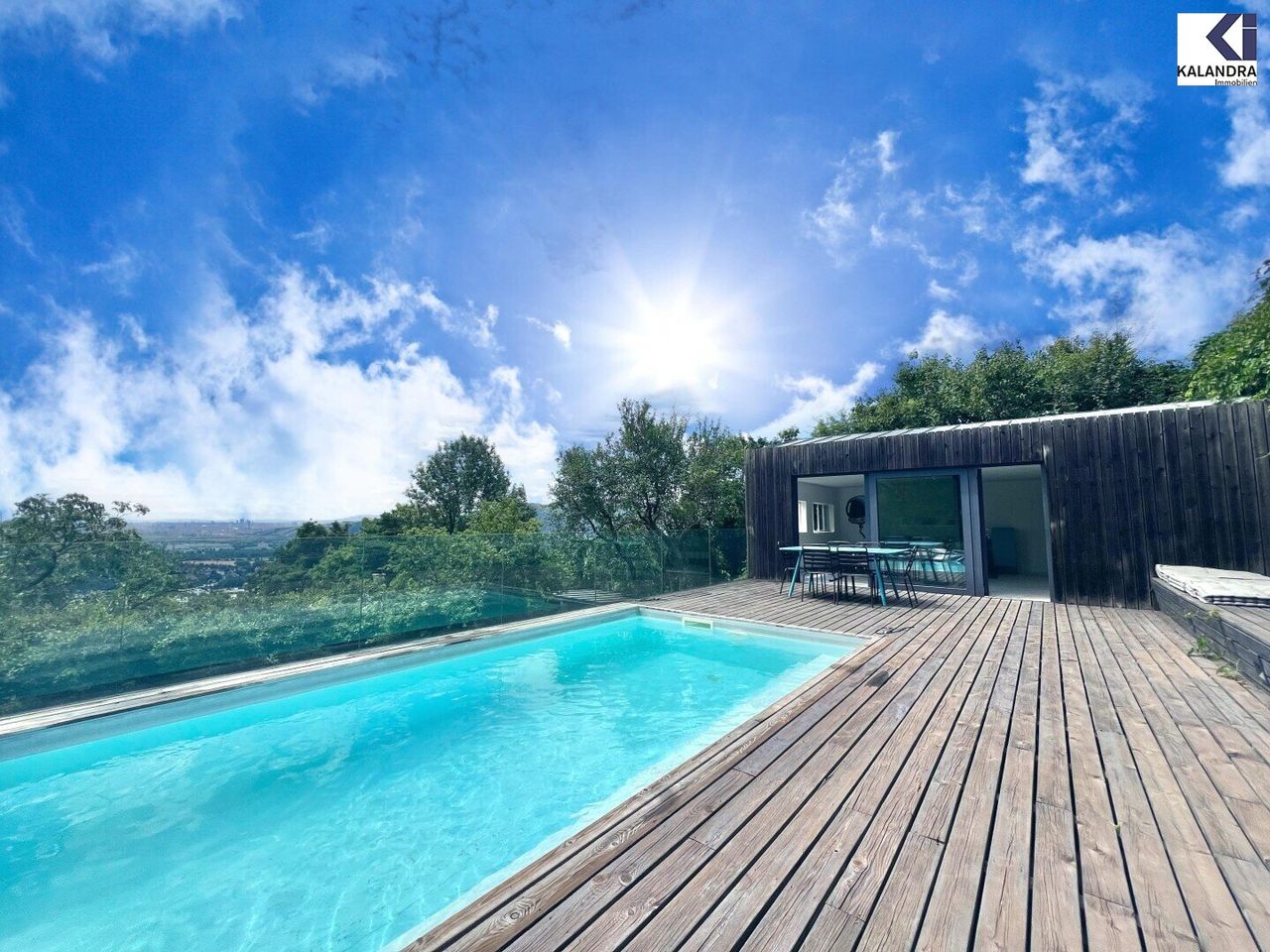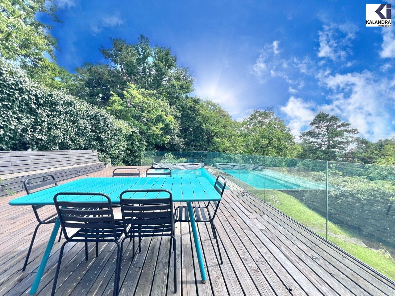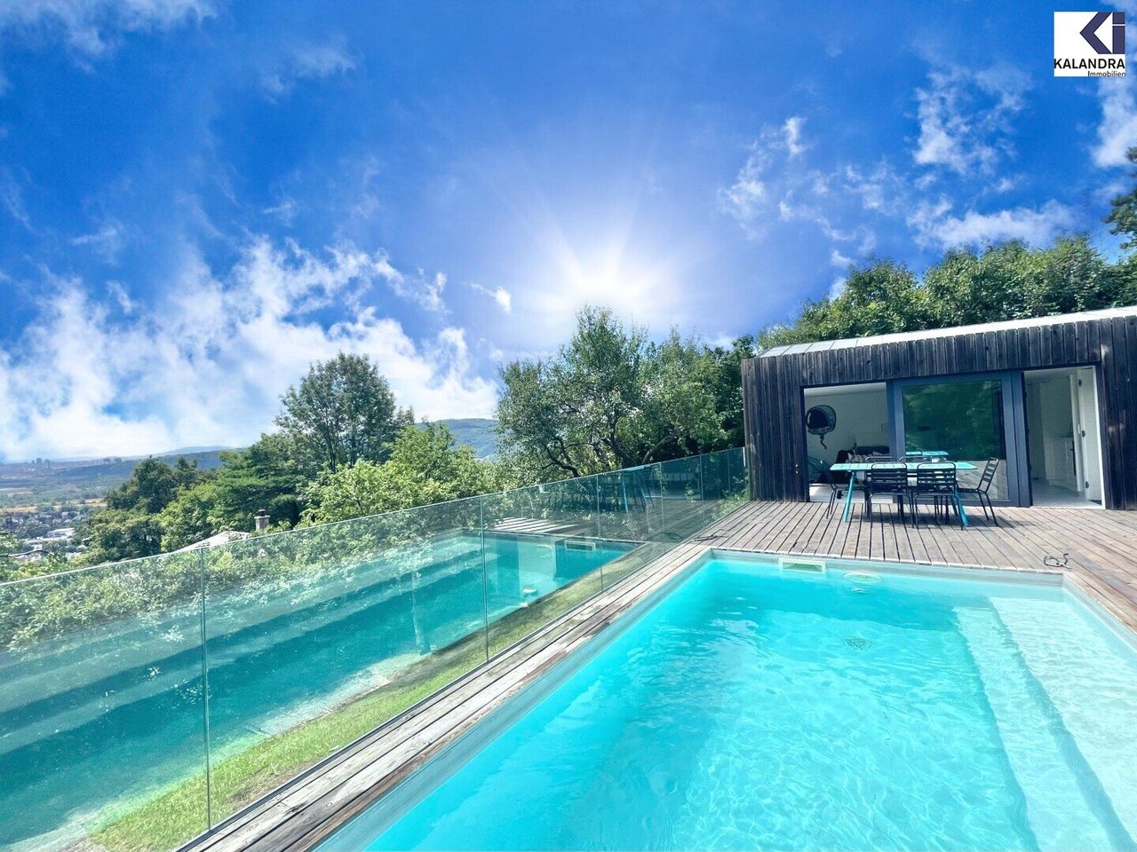 Über eine große Glasschiebetüre Ausgang auf eine südseitige, ca. 83m² große Terrasse mit Outdoor-Essbereich und integriertem Infinity-Pool.