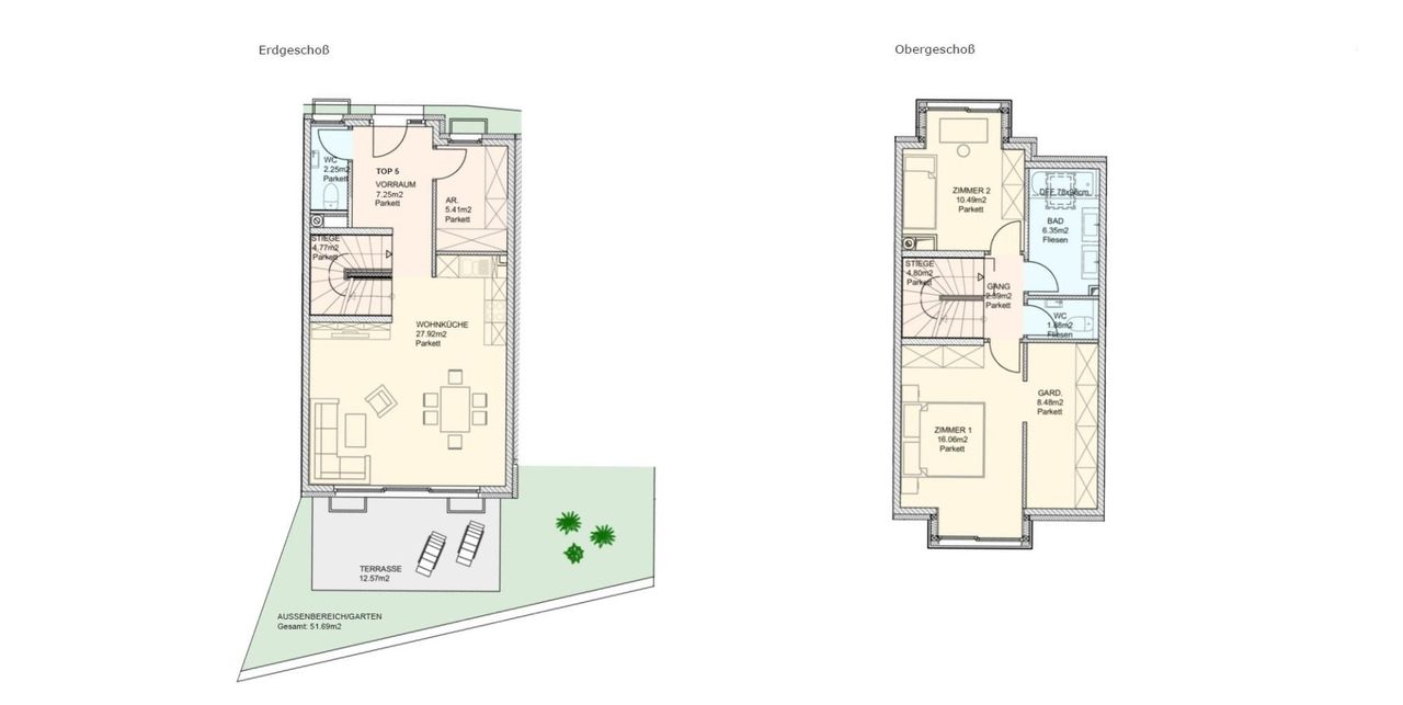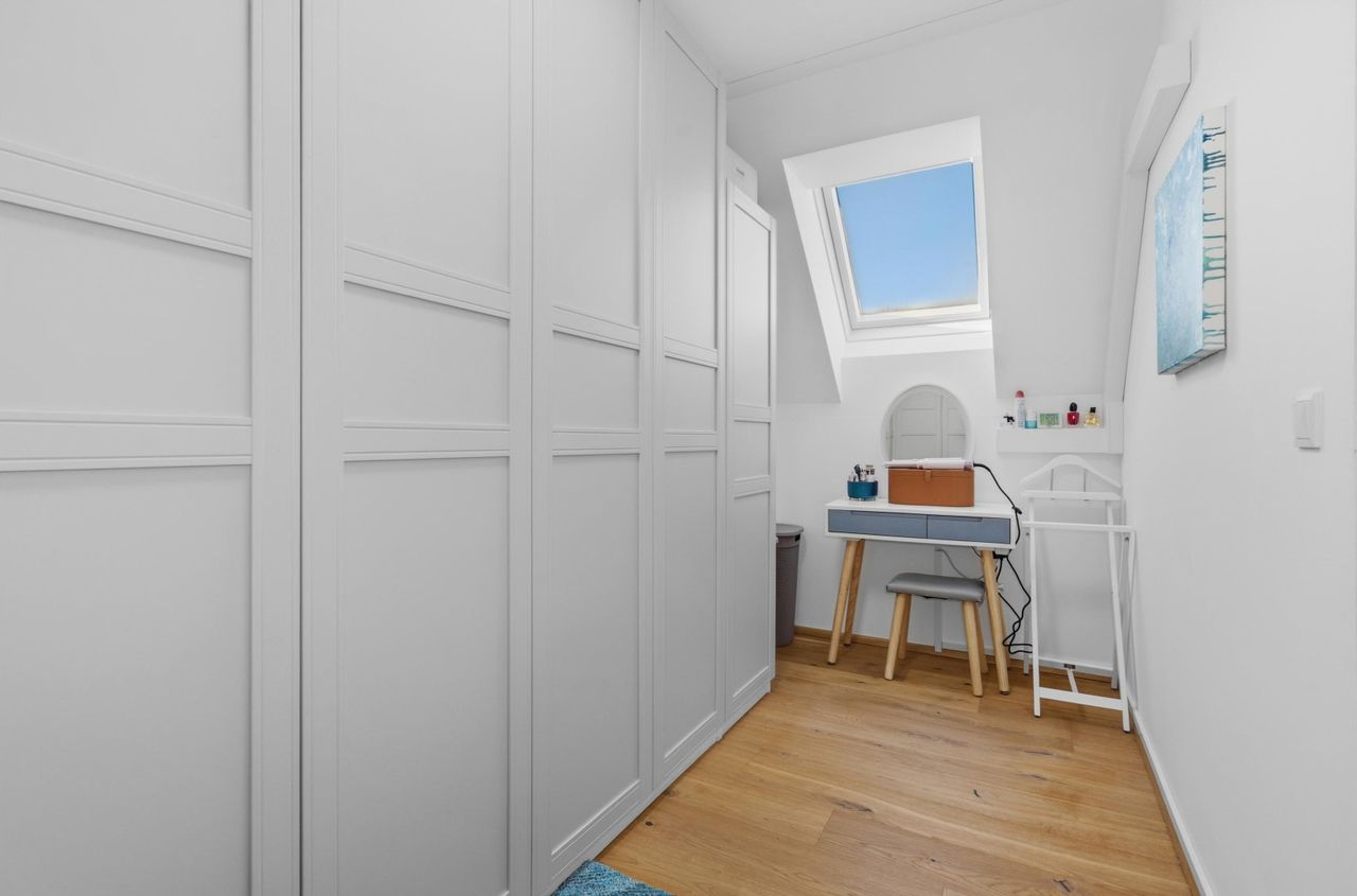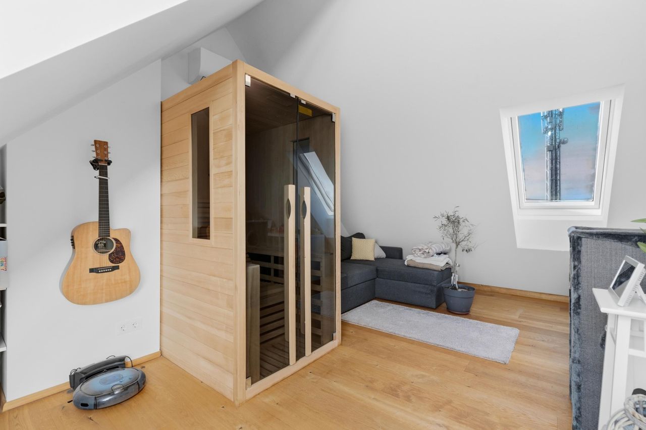 Die oberen Ebenen bieten ausreichend Platz für die ganze Familie. Die Räume sind hell, gut geschnitten und flexibel nutzbar – ob als Schlafzimmer, Homeoffice oder Spielbereich. Besonders praktisch im Familienalltag: Zwei separate WCs, eines im Erdgeschoss und eines im Obergeschoss bei den Schlafräumen.