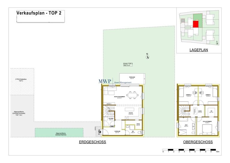Das hier angebotene Haus 2 ist eine Doppelhaushälfte und misst ca. 120,66m2 Wohnfläche | ca. 181,29m2 Garten | ca. 9,20m2 Terrasse | 4x Zimmer | mtl. Baurechtszins ca. 174 €
