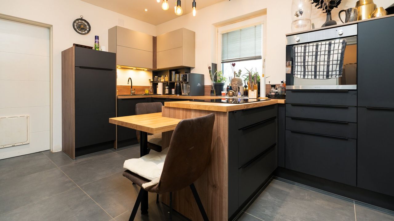 Rechts befindet sich ein Durchgangszimmer, das in das großzügige Esszimmer führt. Von hier gelangt man in die Küche mit angrenzender Speis.