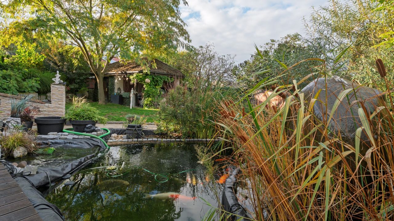 Der Koiteich (auf Wunsch entfernbar) beherbergt wunderschöne Koi-Fische und sorgt gemeinsam mit der Sauna, dem Whirlpool und dem Swimmingpool für ein einzigartiges Wohlfühlambiente.