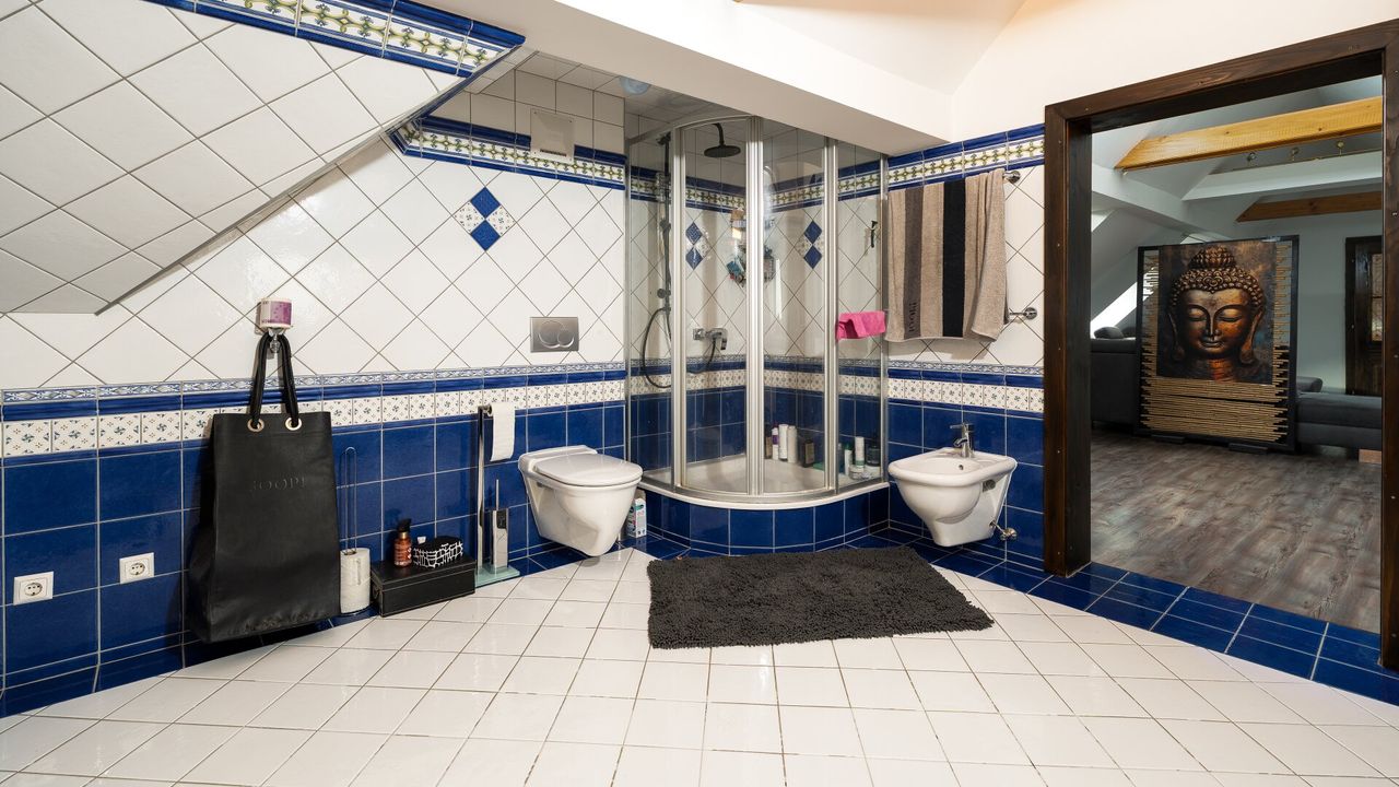 Ein weiterer Gang führt zum zweiten Badezimmer mit Dusche und Solarium sowie zu einem zweiten Schlafzimmer.