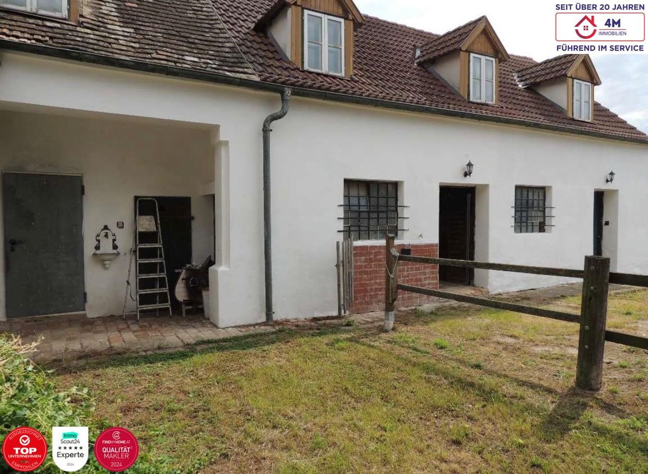 Ein echtes Paradies für Pferdeliebhaber: Auf einem großzügigen Grundstück befindet sich ein Bauernhaus mit umfangreicher Reit-/Pferdeinfrastruktur — insgesamt 10 Pferdeboxen, Stall- und Versorgungseinheiten sowie Flächen für Auslauf und Futterlager. Das Wohnhaus (sanierungsbedürftig) verfügt bereits über Badezimmer und Sauna sowie weitere Ausstattungsmerkmale. Ideal für Privatpferdehaltung, Kleinpension oder einen kleinen Reitbetrieb. Grundstücksgröße: ca. 2700 m² Haus: ca. 200 m², derzeit sanierungsbedürftig — Renovierungsaufwand vorhanden, im Inneren bereits Bad und Sauna vorhanden. Pferdeinfrastruktur: 10 Boxen, separate Pferdebereiche (Futterlager, Sattelkammer, Arbeits-/Stallflächen). Das Gelände ist weitläufig und bietet gute Bewegungsflächen für Pferde. Lage & Infrastruktur Ort: Wetzleinsdorf gehört zur Gemeinde Großrußbach im Weinviertel (PLZ 2113)....