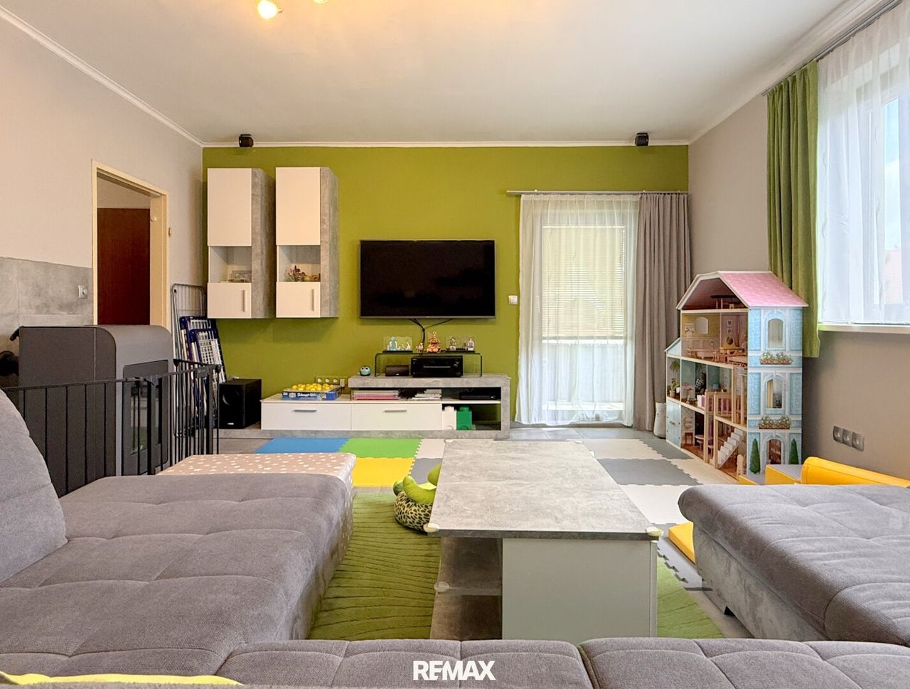 Die Lage? Oberlisse, ruhig, verkehrsberuhigt – über die Straße hinaus nur noch Felder. Drachensteigen, Radfahren oder kleine Entdeckungstouren direkt vor der Haustür? Kein Problem. Das Auto parkt man praktisch in der Garage oder einfach vor dem Haus, ein paar Stufen hinauf – und schon ist man mittendrin im Familienabenteuer.