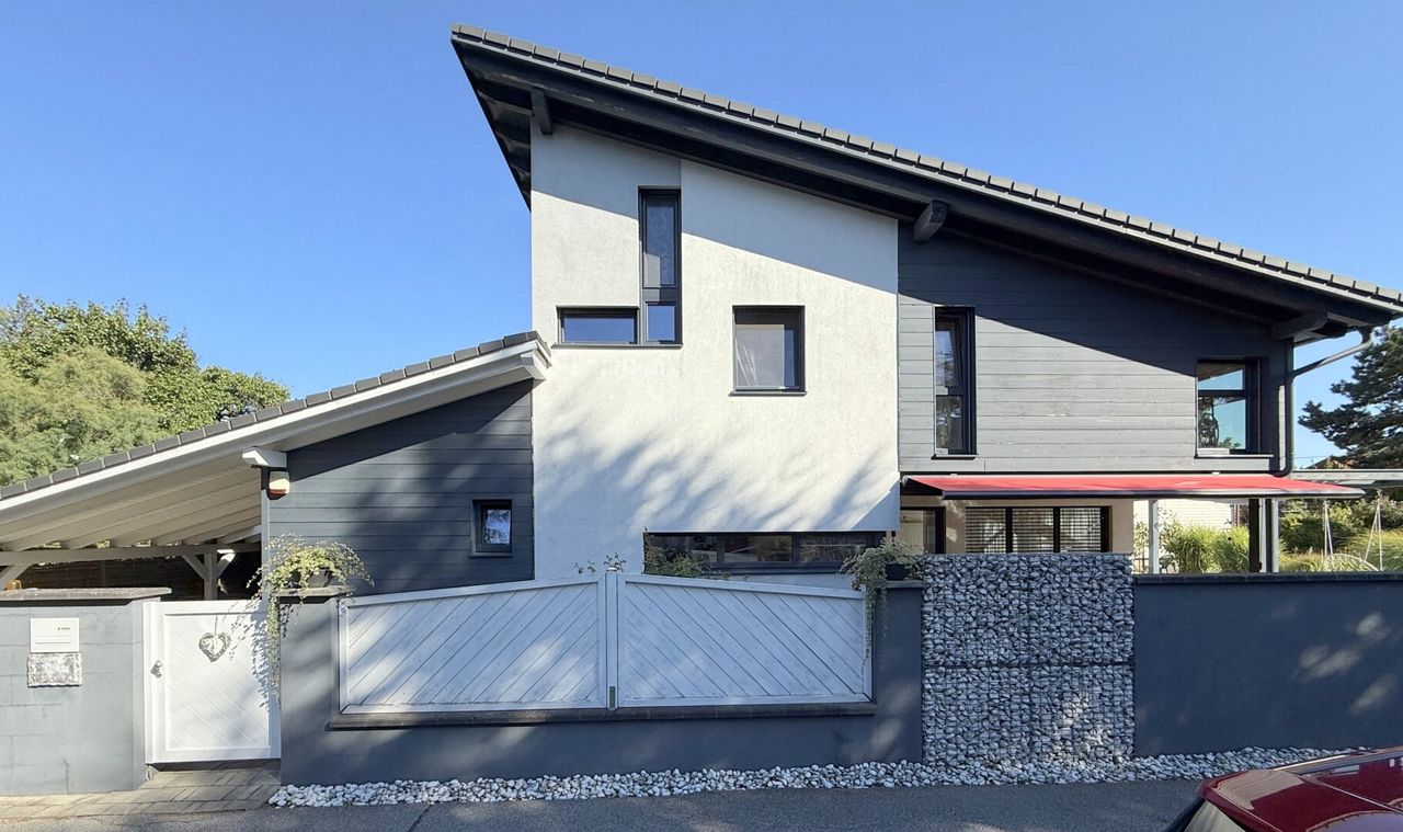 Das Haus selbst, ein Fertigteilhaus in Holzriegelbauweise, erbaut 2012. Die Wohnfläche misst ca. 240 m², die gesamte Nutzfläche ca. 290 m², ergänzt durch ein Gartenhaus auf einem 574 m² großen, liebevoll gestalteten Grundstück.